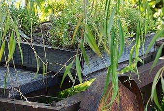 Tengo varios rincones preferidos del jardin, y uno es donde tenemos un sauce llorón, bien de la zona donde vivimos. Es un árbol que me encanta, que crece poco a poco con su compañera, una zorra de tren que marido se trajo de un viejerío donde fuimos a buscar muebles (sí sí, somos uno peor que el otro!)