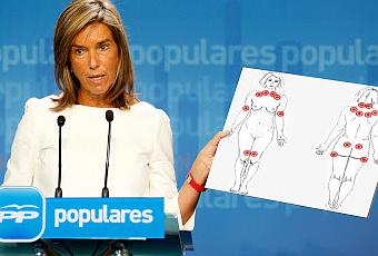 Ana Mato mostrando la nueva campaña de Sanidad: "Hostias sin marca: cómo hacerlo bien"