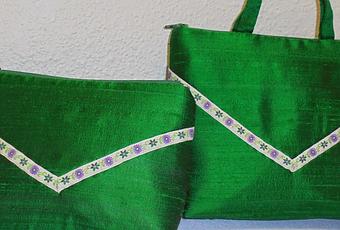 .....y ésto es lo que ha salido con los trozos más grandes y un resto de cinta con florecitas en verde y lila: un conjunto de neceseres en seda salvaje.Y ahora voy con el otro paquetito, todas las piezas cortadas y los materiales guardados de un conjunto elegante para guardar las medias......................... pero por fín le ha llegado su turno, está hecho con la misma tela que éste otro en aquel momento corté los dos conjuntos, pero éste se quedó sin hacer hasta ahora