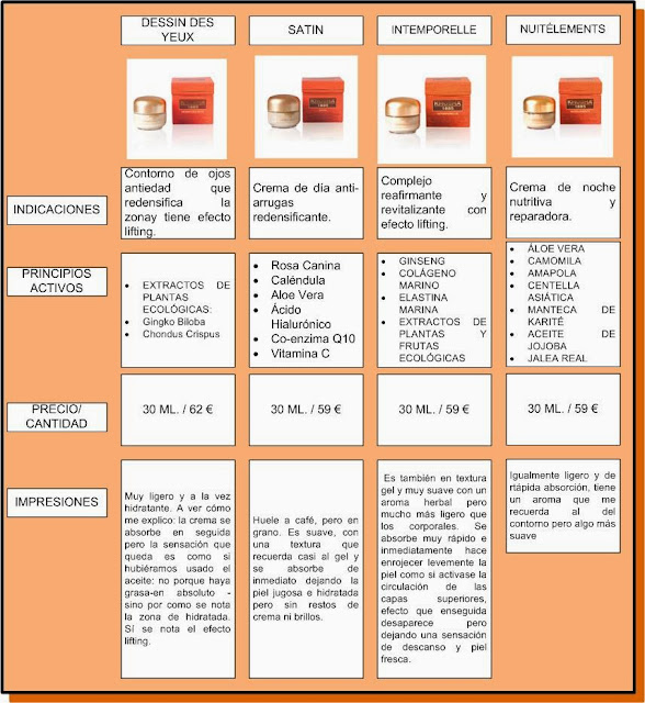 En este caso vamos a conocer las características de cuatro productos entre los que se encuentran un contorno de ojos, una crema de día, otra de noche y una anti-edad.