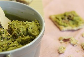 Si unes los consejos de ambas, tienes algo como esto: HUMMUS DE GUISANTES Y AGUACATE CON SEMILLAS