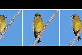 Una pequeña bandada de verderones posados.