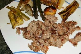 Y las hacemos a la plancha , para que se caramelicen un poco, las aliñamos con cebolla, ajo en polvo, y cebollino, le damos un par de vueltas al molinillo de pimienta de colores.