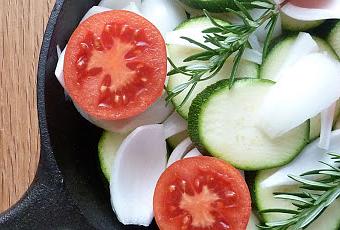 El plato no tiene mayor complicación que lavar y cortar las verduras, poner en la sartén, regar con un buen chorro de aceite de oliva y, para aromatizar, colocar unas ramitas de romero.