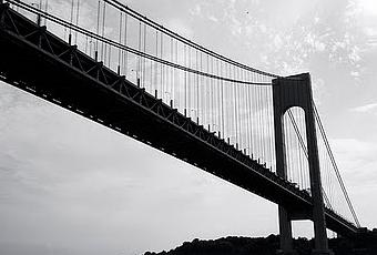 El caso es que andaba dándole vueltas al tipo éste y buscando la manera de relacionarlo con la construcción o con la arquitectura (que aunque parezca lo mismo, no lo es) y lo encontré en uno de sus libros: The Bridge, una crónica de la construcción del puente de Verrazzano, el más largo de los puentes colgantes de Estados Unidos, para lo cual habló con todos sus anónimos protagonistas.