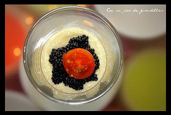 3.- Ponemos el caviar sobre la brandada, decoramos con los Cherry