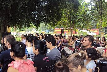 En los Jardines del Centro de Investigación y Desarrollo de las Artes Escénicas en Santa Clara durante dos horas en la mañana de este 20 de octubre los poetas Alpido Alonso, Arístides Vega Chapú y Jorge Ángel Hernández se encargaban de ofrecer al público, amplio y mayoritariamente joven, el texto que los caracteriza y compromete, que emociona a quien disfruta.