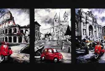 Le compré una lámina. El tema de incluir Vespa o Seiscientos, en el paisaje turístico, no es demasiado original, pero yo le puedo dotar de un análisis semiótico artístico-emocional imbatible: la pintura representa el recuerdo del viaje a Roma y la de ese extraordinario y humilde pintor.