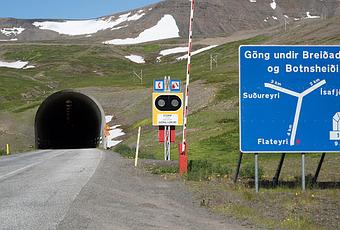 Una de las cosas que mas suele llamar la atención a la gente cuando visita los Fiordos del Oeste de Islandia, es el conocido como el Túnel de los Fiordos del Oeste (Vestfjarðagöng) o Túnel bajo el Breiðadalsá y el Botnsheiði (Göng undir Breiðadals-og Botnsheiði). No es el único túnel de los Fiordos del Oeste ni mucho menos de Islandia (De hecho, hay unos cuantos) pero si es el mas largo de la isla y muy conocido por los turistas por algunas de sus peculiaridades.