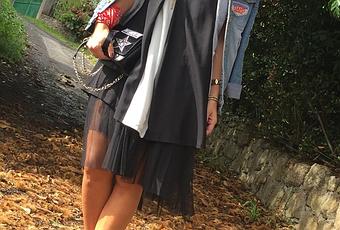 Buenos, ahora al lío. Qué os parece este look?? Yo cada vez que lo veo me gusta más y no sé el porque me recuerda a un disfraz de bruja piruja de niña pequeña, debe ser por la falda de tul que asoma por debajo del vestido o por los toques de los parches en el bolso, pero no sé lo veo y me acuerdo de esas brujitas pequeñas que van correteando por la calle en Samhain.