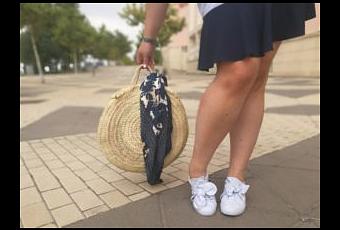 De él me encanto todo!!! Su largo es ideal para llevarlo en verano con una simple sandalia o en otoño con un shorts o jeans debajo a modo de vestido camisero, el corte, el color ¡ todo ! Esta vez lo he querido combinar con accesorios muy veraniegos como el capazo redondo de mimbre que tantos suspiros se ha llevado esta temporada y mis sneakers azules de lazos que ya me visteis en mi escapada a Burgo de Osma y que este otoño van a ser las reinas de mis pies