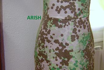 El modelo original que ví en el escaparate éra en gasa-crep lisa de color rosa, con vivos azul marino metidos entre los cortes del canesú y de la cintura y un entedós de encaje colocado a unos cinco centímetros antes del bajo de la falda, pero como mi tela es sencilla, para llevar a diario, he eliminado los detalles ya que en liso lucen pero en estampado no y ahí va el proceso de montaje para la prueba: