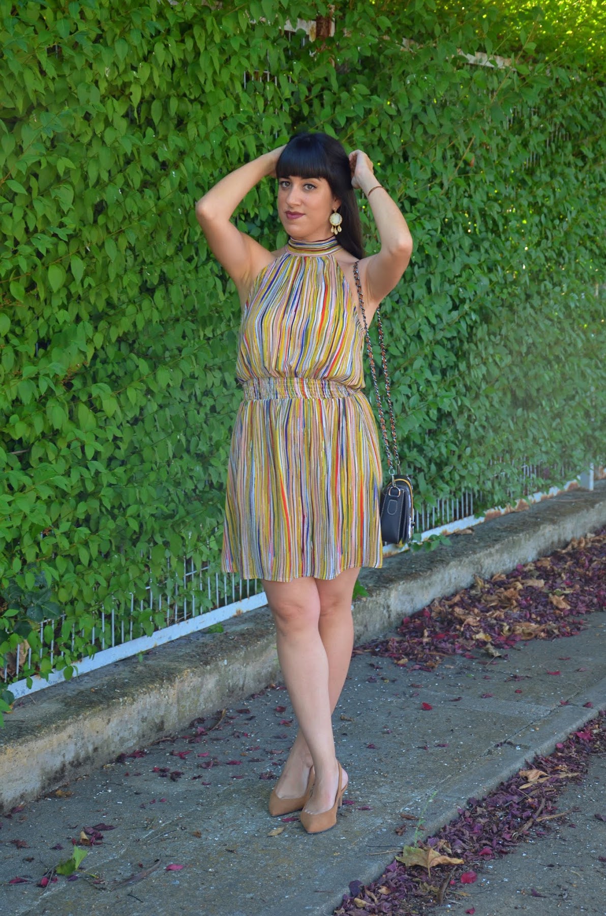 Los vestidos halter son un must del verano y si además tienen estampado a rayas y multicolor, son una prenda ideal para nuestro armario estival como es el caso de este de Shein.