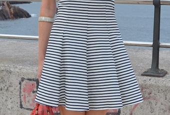 El estilo navy se ha convertido con el paso del tiempo en un básico en nuestros looks veraniegos, podríamos decir que con más o menos fuerza, temporada tras temporada es tendencia. Una de las formas en las que podemos lucir uno de estos looks marineros es con un vestido de rayas con la clásica combinación azul marino y blanco como el que os enseño en el look de hoy, lo combiné con un bolso rojo, otro de los colores típicos en estos looks, y cuñas de esparto. Un look cómodo y elegante adaptable a cualquier ocasión. Vestido de rayas: ZARACuñas de esparto: ZARABolso: PURIFICACIÓN GARCÍA