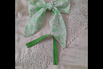 en el delantero le he puesto una tira ancha de guipur blanco con mariposas y un biés de algodón satinado en verde delimitando el final del cuerpo con un gran lazo en un lado