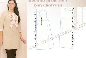 Realizamos el patrón base normal y anulamos pinzas de la cintura, delante y detrás. La del alto de pecho delante la respetamos. Damos forma evasée a ambos lados 12 cm y redondeamos la base.