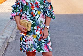 El estampado tropical se asocia con el verano, y es que sus llamativos colores y los dibujos tan refrescantes que suele llevar lo convierten en un estampado propio de esta estación. En diversas ocasiones os he mostrado en este blog de moda propuestas de outfits con prendas de este estampado. Os recuerdo algunos de los últimos looks: