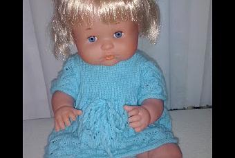Con restitos de lana y a ratitos perdidos le ha hecho un vestido con sus braguitas a juego a la muñeca que los Reyes le regalaron a Evelyn