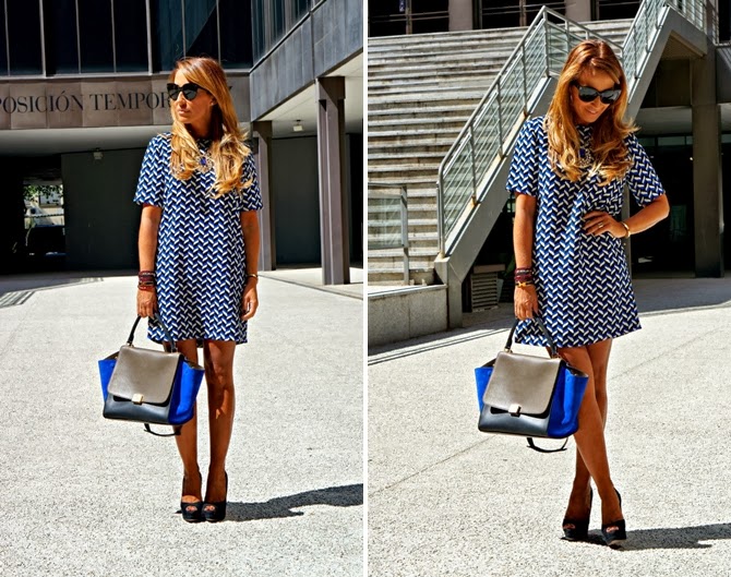 Un vestido de nueva temporada de la tienda Zara es este vestido en zig-zag con estampado retro de manga corta en azul, negro y blanco. Perfecto para combinar con sandalias, zapatos bajo o con taconazos.A dress shop new season Zara is this zig-zag dress with short sleeve retro print in blue, black and white. Perfect to combine with sandals, shoes with heels or low.