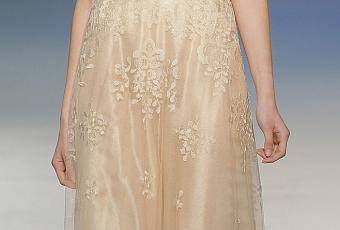 Con el nuevo mes nos acercamos a una nueva firma para nuestros vestidos de la semana: Paula del Vas. Después de más de 15 años diseñando, podemos decir que es una de las firmas nupciales con más personalidad de nuestro país, y así se demuestra en sus colecciones. El vestido de novia que traemos esta semana es uno de nuestros favoritos. Rompiendo con el tradicional blanco, su corte es muy sencillo, pero tiene una caída espectacular. La diferencia de texturas entre el cuerpo y la falda y su cuello hacen de este vestido un modelo perfecto para una novia moderna.
