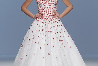 Si eres una novata en esto de zambullirte entre vestidos de novia y trajes de ceremonia, Cymbeline no te sonará demasiado, pero la marca francesa de las hermanas de Nemours (Francia) lleva trabajando varias décadas y ha sido premiada en varias ocasiones como Mejor Diseñador en la París Bridal Fair. En la pasada pasarela Gaudí presentaron su nueva colección de vestidos de novia y ceremonia bajo la el título y la melodía de "La vie en Rose", toda una declaración de intenciones: fantasía, romanticismo y por encima de todo el espíritu de París.