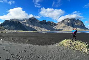 La mejor actividad que hacer en Vestrahorn es pasear. Caminar por la playa, caminar junto a la laguna, caminar y mirar, mirar y caminar. Y es que contemplar el fascinante cuadro en movimiento que se dibuja en directo frente a ti es totalmente adictivo. Simplemente, dar un paseo por la playa de Stokksnes disfrutando del paisaje y buscando el mejor ángulo para las fotos ya merece la pena. Según el estado de la marea, podrás contemplar también el efecto espejo.