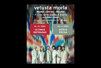 Vetusta Morla nos presenta dos fechas en el WiZink Center de Madrid antes de terminar el año por todo lo alto en su fin de gira.Llega el momento de despedir su gira Cable a tierra, un fin de gira en Madrid con doble fecha en el WiZink.Vetusta Morla anuncian que antes de terminar el año pasarán por el WiZink Center, con dos fechas para despedir Cable a tierra, serán el 30/11 y el 1/12, dos fechas para despedir una gran etapa. En estos conciertos, estarán acompañados de la orquesta celtibérica conformada por seis artistas procedentes de dos formaciones renovadoras de la música tradicional: los palentinos El Naán y las gallegas Aliboria.