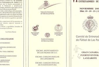 En noviembre de 2001 se llevaron a cabo Las VI Jornadas de actualización y perfeccionamiento para entrenadores de fútbol. Dichas jornadas se impartieron en Las Palmas, Fuerteventura y Lanzarote siendo organizadas por el Comité de Entrenadores de Fútbol de Las Palmas. Mi ponencia era La Preparación Física en el Fútbol actual.