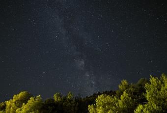 La fotografía que ilustra la entrada de hoy está realizada desde el observatorio de Calar Alto (Almería) 2.168 metros de altitud, con 20 segundos de exposición e iluminando los árboles con una linterna potente. A mayor tamaño (botón derecho, ver imagen) vemos tanto las estrellas más próximas, como las innumerables que conforman la vía láctea, visibles incluso en la instantánea de pequeño tamaño. Esta inmensidad insalvable solo forma parte de nuestra galaxia particular, lo que empequeñece aún más la irrelevante presencia del hombre en el universo. Nacemos y morimos cubiertos por el manto de nuestra ignorancia, que apenas nos permite ver un palmo más allá de nuestras propias narices, aunque la belleza de la imagen calme, al menos algo, la tristeza de la frustración.