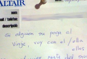 ¿Creéis que alguien contestará al anuncio? La lastima es que nos quedaremos con la duda, pero el anuncio es real y la foto fue tomada hace unos días en la librería Altair de Barcelona.