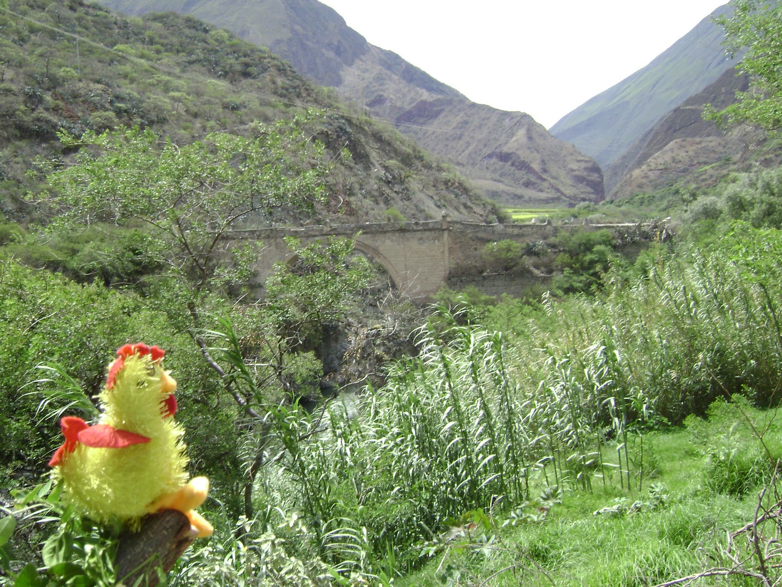 Y es que no es un lugar muy turístico. De hecho, llegar es un poco difícil. No hay rutas directas y, desde que se contruyó el nuevo puente, los carros circulan por ahí, y el puente viejo lo usan solo los que no tienen brevete (para evitar a la policía). Hay combis que te dejan en la carretera, donde un cartel indica el desvío al puente antiguo, pero de ahí hay que caminar un buen trecho. "El río, el Pachachaca temido, aparece en un recodo liso, por la base de un precipicio donde no crecen sino enredaderas de flor azul (...) Hacia el este, el río baja en corriente tranquila, lenta y temblorosa; las grandes ramas de chachacomo que rozan la superficie de sus aguas se arrastran y vuelven violentamente, al desprenderse de la corriente. Parece un rio de acero líquido, azul y sonriente, a pesar de su solemnidad y de su hondura. Un viento casi frío cubre la cima del puente".