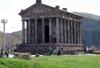 El templo de Garní fue edificado en la fortaleza del mismo nombre (de la que apenas queda nada por haber sido destruida multitud de veces) y financiado por el emperador Nerón. Fue dedicado al dios sol Mitra, dios romano y persa al mismo tiempo, con lo que se aseguraban de contentar a ambos bandos y de que ninguno de ellos lo destruyera.