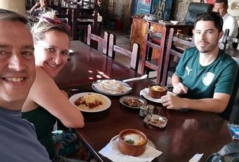 Son las 13:30, nos vamos a Abdu Restaurant a comer. Le escribo a Senusi y me pregunta que donde estamos y poco después viene.