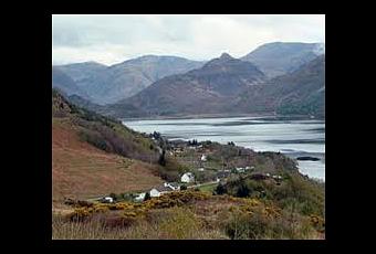 Situado en la boca de Loch Long, desde el que , pasaso el Loch Alsh, se vislumbran los Montes de Cuillin, en la Isla de Skye.