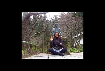 Salgo de la estación. Me gustaría visitar la playa Yuigahama que veo al fondo, ir a Hase-dera y a Kotoku-in Temple donde está The Great Budha ¨Daibutsu¨ pero son las 16.50 y el templo del Buddha cierra a las 17h (de octubre a marzo) y la guía que llevo dice que hay unos 7 minutos andando! Así que paso por delante de Hase-dera pero no entro y me voy caminando rápido hacia el templo del Big Buddha, con la esperanza de que me dejen entrar y... llego por los pelos! Pago la entrada (200 yens) y entro a verlo. ¡Qué descanso! Estoy un rato contemplando la imagen de Amidabutsu (Amitabha Buddha) de 11 metros desde todas las perspectivas, empiezo a hacer fotos y se me acerca un señor japonés pidiéndome mi cámara para hacerme fotos con el buda. Mi mente occidental al principio desconfía de la amabilidad pero estoy en Japón y aquí la gente se ofrece a ayudar sin esperar nada a cambio ni engañarte. Me hace mil fotos, incluso me va indicando distintas posturas para hacer jajaja, cuando le digo que ya es suficiente, que no necesito más fotos me devuelve la cámara, le agradezco el gesto y nos despedimos con una sonrisa.