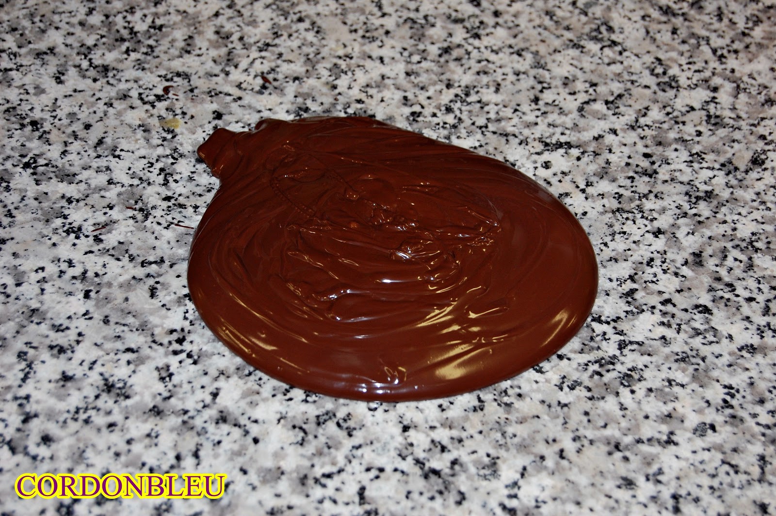 Se cortan trozos de papel de 5x10 centímetros. Se estira la cobertura atemperada (os dejo el enlace que explica como atemperar Chocolate, por toda una artistaza ESTHER SANCHEZ DE CHOCOLATÍSIMO) con una paleta en el papel y se enrosca hasta conseguir tubos regulares. Se deja secar la cobertura y con una manga pastelera se rellenan los cilindros de nata. Se dejar congelar y se tapa una de las bases del puro con la misma cobertura negra.