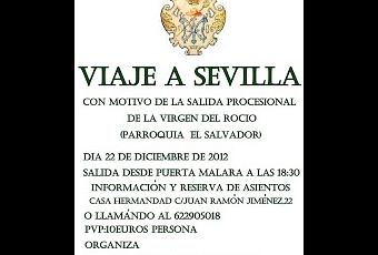 El Grupo Joven de nuestra hermandad ha organizado un viaje a Sevilla con motivo de la salida procesional de la Virgen del Rocío de la Parroquia del Salvador, que tendrá lugar el próximo día 22 de diciembre.