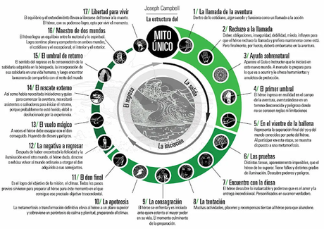 El Monomito o Mito único, también conocido como el "Viaje o periplo del Héroe", es un término acuñado por el antropólogo y mitólogo estadounidense Joseph Campbell para definir el modelo básico de muchos relatos épicos de todo el mundo. Da igual la cultura, la época, el idioma,...todos tienen unos mismo fundamentos.