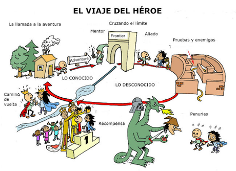 Si alguien quiere saber mas del tema, le dejo dos cosas. La primera es este PDF de 72 páginas que condensa de que trata eso del Monomito. Y por otro lado unos esquemas que resumen de que parte se suele componer ese periplo.Algunos mas simples,como el arriba que encabeza la entrada y otros mas complejos y con mas niveles, pero igual de interesantes y útiles. Esto lo cuelgo aprovechando una explicación que le di a uno de mis sobris de porque muchas historias de heroes tienen tantos puntos en común.