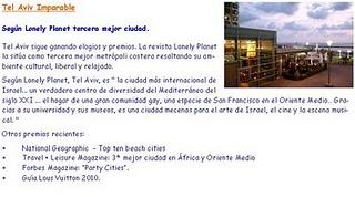 Tel Aviv sigue ganando elogios y premios. La revista Lonely Planet la sitúa como tercera mejor metrópoli costera resaltando su ambiente cultural, liberal y relajado.