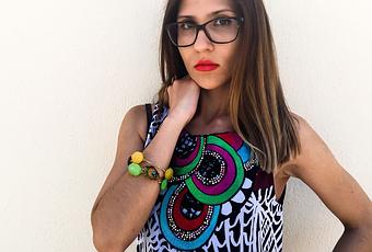 El vestido que os enseño hoy me chifla!! El estampado es súper original, diferente y fresco. Además, llenos de colores vivos que destacan sobre un fondo negro. Lo que más me gusta es el detalle del escote con colores que hablan por sí solos!!