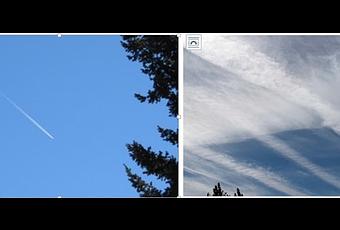 A la izquierda, una estela de condensación natural. A la derecha, estelas persistentes entrecruzadas.