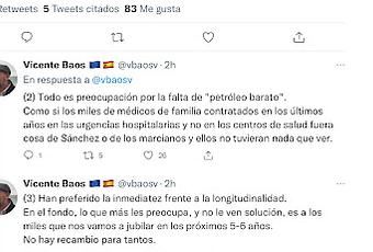 Comparto este excelente hilo de la cuenta de Twitter del doctor Vicente Baos, que junto a Juan Simó es uno de los referentes en activo de la Atención Primaria Nacional. En un minuto desmontan la estrategia política de las Autonomías que sigue favoreciendo el hundimiento de la sanidad.