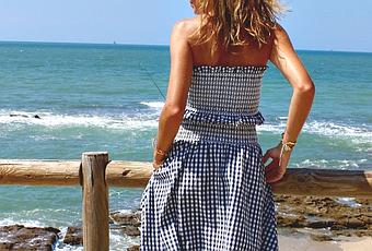 Buenos días!! Me chifla el estampado vichy , y este look es lo  más! con bandeau de nido de abeja y falda midi.Feliz día!!