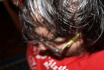 4. Presionamos con las manos la cabeza, arrastrándolas por el cuero cabelludo con ligeros movimientos verticales.