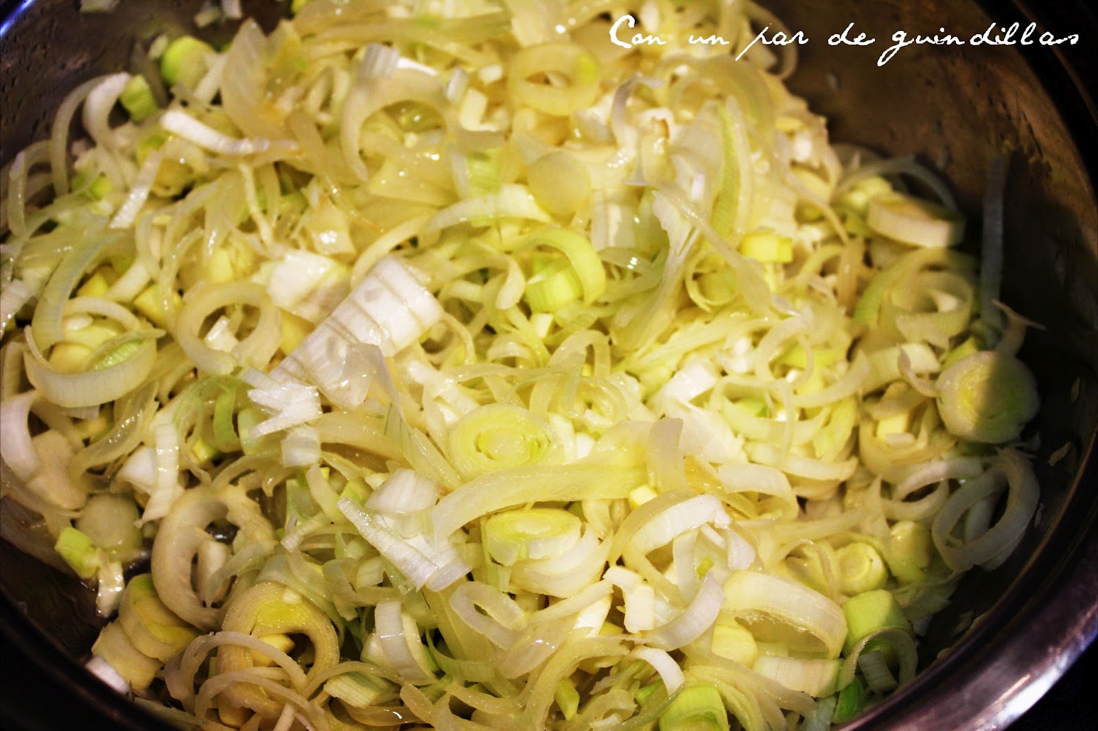 Elaboración: 1.- Pelamos y lavamos las patatas y las cortamos en dados. Picamos el puerro y la cebolla en juliana. 2.- En una cazuela derretimos la mantequilla y sofreímos la cebolla. Cuando esté transparente añadimos el puerro y rehogamos el conjunto unos 10 minutos.