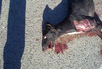 Galgo atropellado en la autovía A7. Desgraciadamente esto es lo que nos espera en los proximos meses. La temporada de caza deja más 50.000 perros abandonados, sobre todo Galgos, Podencos y Bretones.(Sin olvidarnos de los setter, teckel, pointer, bracos ... esto lo añado yo)