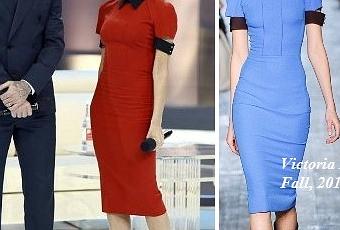 La diseñadora se convirtió una vez más en la mejor imagen de sus propias creaciones. En la primera imagen la vemos con un vestido rojo de línea lápiz, de la temporada Otoño 2012, que combinó con zapatos de salón de ante de Casadei.