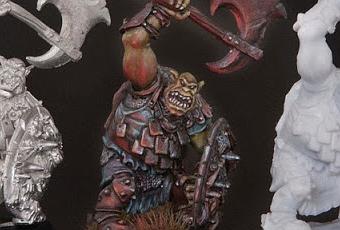 La figura que ha escogido es una figura esculpida por Bobby Jackson,un señor de la guerra Orco llamado Kavorgh(Que para mi gusto tiene algunos toques curiosos que recuerdan a los orcos dibujados por Angus McBride para el Señor de los Anillos,como las placas de la armadura colgando de esa forma por ejemplo).Y no solo se ha limitado a pintarla con su nivel habitual de maestria,sino que ademas ha hecho toda clase de pruebas con la miniatura ya pintada,como por ejemplo ver la resistencia de la resina de las miniaturas de Bones a los golpes y a las presiones(Usando uno de los libros de Canción de Hielo y Fuego de George R.Martin,por cierto!) para ver como aguantaría una figura de Reaper los rigores del día a día una vez ya pintada y lista para usar.