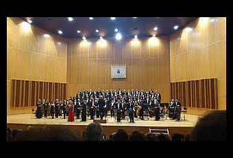 El responsable Marzio Conti está dando nuevos aires a una orquesta que vuelve a sonar empastada y sin "desmanes", perfectamente adaptada a su nuevo titular que fue capaz no ya de brindar una versión llena de los claroscuros que ya en sí tiene esta obra, sino de contener volúmenes para disfrutar de las partes vocales, solistas y a coro. Si la cuerda sonó clara, limpia en cada pasaje, además de contundente en los tres contrabajos, el viento que dobla muchas veces las voces se "ensambló" perfectamente con ellas, destacando los trombones por un sonido redondo y nunca estridente además de las trompetas de llaves. Impecable el órgano (eléctrico) y otro tanto los timbales, acariciados con baquetas de madera (sin fieltro) situados al fondo a la derecha (aunque suene a chiste) que nunca enturbiaron una sonoridad idónea. El conocimiento que el director italiano tiene de esta obra así como su cercanía en el tiempo tras hacerla en Bilbao también con un coro asturiano (El León de Oro) se notó en la cantidad de "detalles" que dieron un nuevo brillo a las texturas que encierra.